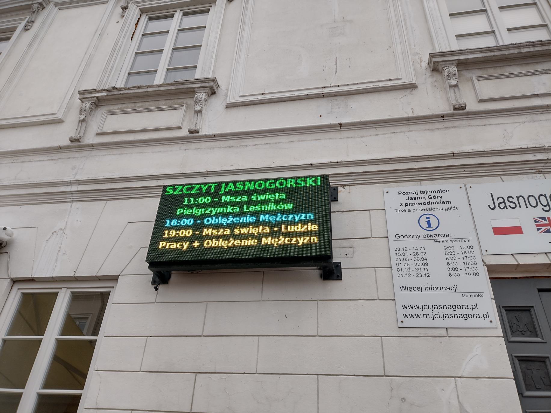W ciągu dnia wokół pielgrzymujących krążyły nieśmiało osoby w kryzysie biedy i/lub bezdomności z prośbą o wsparcie. Mnie zaczepił pan, który ma 800 złotych emerytury i szósty miesiąc czeka na badanie kręgosłupa. Opowiedział, że jak kręcili pod Jasną Górą „Potop” to brakowało śniegu i Hoffman kazał rozsypać w parku naftalinę, której smród falował długo w okolicy, a potem o tym, jak to się stało, że po kilku dekadach pracy jako strażak w zakładzie przemysłowym, skończył z tymi ośmioma stówami na miesiąc i bardzo krępującą dla niego koniecznością proszenia obcych ludzi o pomoc. Tymczasem niezwykle radośni klerycy śpiewali do Ducha Świętego „bądź jak ogień w moim ciele, bądź jak ogień w duszy mej, rozpal mnie”.