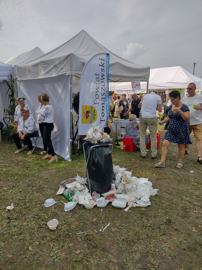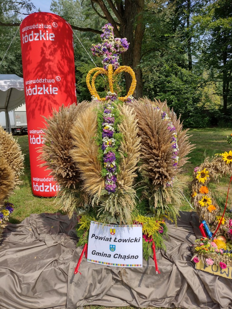 Sceny otoczone były rzędami namiotów Kół Gospodyń Wiejskich, w których gęsto i obficie wystawiono przysmaki biorące udział w konkursie: prażuchy z zsiadłym mlekiem, zupa porowa z pulpetami, kaczka faszerowana podawana z nadziewana cebula, kartoflanka, pyzy ziemniaczane okraszane, paszteciki z soczewicą, swojski barszczyk z kotlecikami z ryżu i chleba, zupa grzybowa z kluseczkami, kluski żelazne ze smażonką, kapusta duszona, zupa chrzanowa, zalewajka, czernina z łazankami, sery łowickie, sernik z obsadzonego mleka (cokolwiek to jest), sernik z malinami, drożdżówki ze śliwkami i wiśniami, jabłecznik, ambrozja drobiowa z przecierkami w sosie żurawinowym, placki i pączki ziemniaczane, pierogi pieczone i barszcz, cepeliny z kapustą zasmażaną, świeżonka, chłodnik, kaszanka, zupa grzybowa, kluseczki na parze z jagodami, karp faszerowany, rogaliki, kapusta z grochem, makiełki, zupa krem z dyni, cała paleta twarożków, plyndze z sosem kurkowym, kotlety z kapusty białej, sałatka z tuńczykiem, gulasz z kurkami, tort czekoladowy, kutia, ciasto ze śliwkami na maślance, gołąbki, zupa grzybowa z kaszą po łowicku. Uff.
