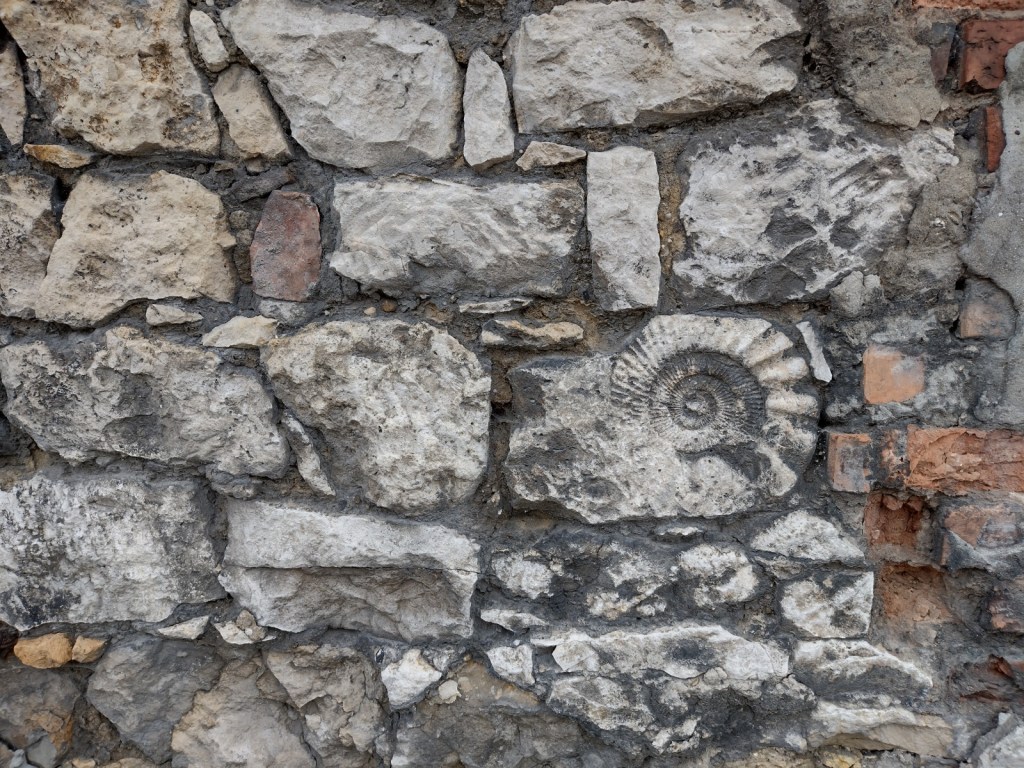 Natomiast w okolicznych murach, pomiędzy napisami rozmaitej treści, można napotkać takie perełki, jak odciski skamielin z zupełnie innych tysiącleci życia na tej Ziemi.