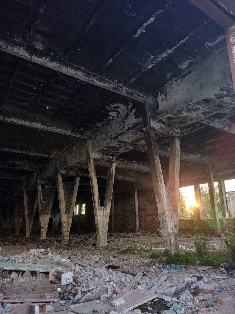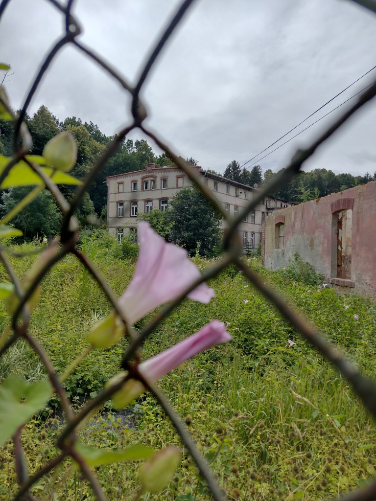 W niewielkim hoteliku, w którym mnie nocowano można zjeść śniadanie z widokiem na bujne, różane kwiatostany i pofabryczne ruiny jednocześnie. Spytano mnie, jak się czuję widząc ten krajobraz. Odparłam: „Feels like home”.
